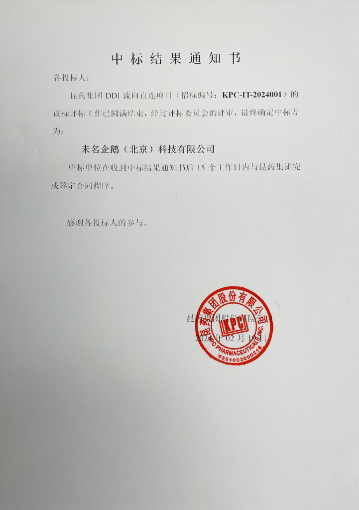 <span class="bdsharebuttonbox" data-tag="share_3" data-sharetitle="中标结果公示(昆药集团DDI流向直连项目)"><a href="#" class="bds_sqq" data-cmd="sqq" title="分享到QQ好友"></a><a href="#" class="bds_weixin" data-cmd="weixin" title="分享到微信"></a><a href="#" class="bds_qzone" data-cmd="qzone" title="分享到QQ空间"></a><a href="#" class="bds_tsina" data-cmd="tsina" title="分享到新浪微博"></a><a href="#" class="bds_more" data-cmd="more"></a></span> 中标结果公示(昆药集团DDI流向直连项目) <span><i class="ico-1"></i>2024-02-19</span><span class="views"><i class="ico-1"></i><b id="viewCountId"></b></span><span id="switcher"> <a href="javascript:void(0)" id="big"><i class="ico-1"></i></a> <a href="javascript:void(0)"><i class="ico-1"></i></a> <a href="javascript:void(0)" id="small"><i class="ico-1"></i></a> </span> 上一条中标结果公示——2024年anbo官网努库斯植物技术有限公司污水牵引槽罐车采购招标 下一条中标结果公示(anbo官网2026年年度小型维修工程(安装类)采购)