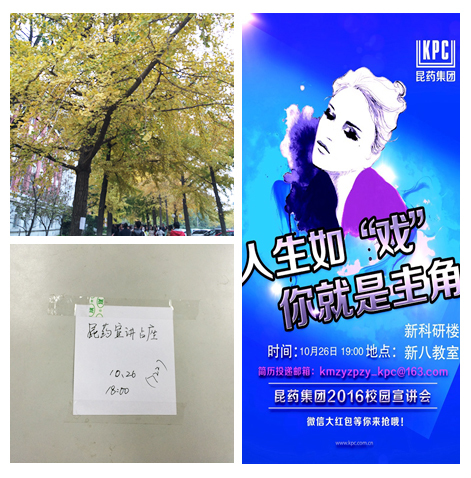 人生如同一部充满奇幻色彩的电影,不拼搏不想象,你永远不知道会遇见多少美好!十月,昆药“剧组”横跨整个中国来到沈阳药科大学、吉林大学进行昆药集团关东剧场校园海选,只为发现优秀的你,为你的职场生活拉开新的影视篇章。