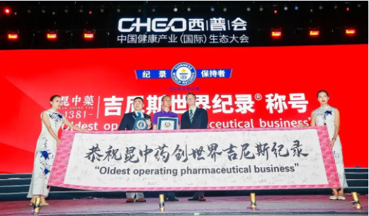 此次大会现场,上千名行业同仁共同见证中医药振兴发展的高光时刻。昆药集团旗下子公司昆中药创下吉尼斯纪录,成为全球公认的“Oldest operating pharmaceutical business”!昆中药董事长杨承权表示,昆中药作为中医药文化的载体,将弘扬中医药文化精髓,把我国五千年中医药文化推向世界。